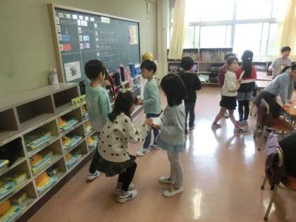 「わたしこんなに集まったよ。」と、もらった自己紹介カードを嬉しそうに見せてくれる1年生でした。