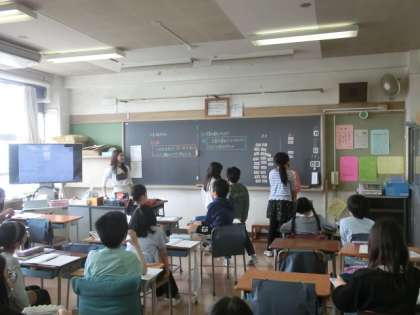 天気の変化には、法則があるのかを考えています。「ある」「ない」の自分の考えをはっきりさせ、黒板に名前を張っています。そのあとは、自分の考えの根拠をノートに書きだしています。