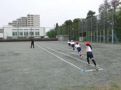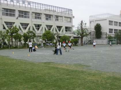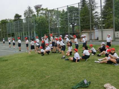 5年生が校庭で体育をしていました。