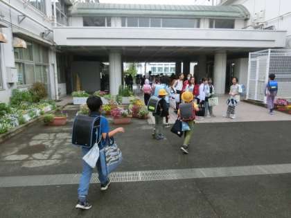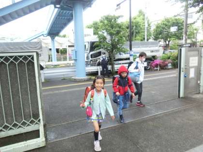 朝方降っていた雨も上がっています。子どもたちはかさをささずに登校することができました。ちょうど登校の時刻に雨が強くなる予報だったので、安心しました。