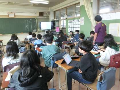 6年生の授業タブレットには国語です。ディベートの準備をしています。