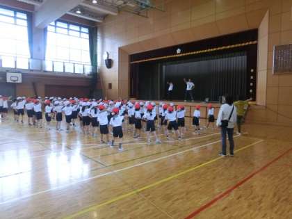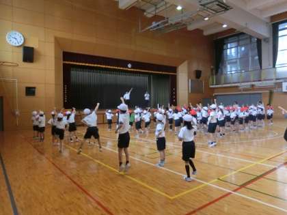 体育館では1年生と2年生が運動会の演技の練習をしていました。