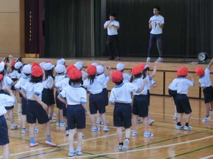 ステージ上で踊る先生の動きを見ながら、子どもたちが踊っています。なんだかとても楽しそうです。