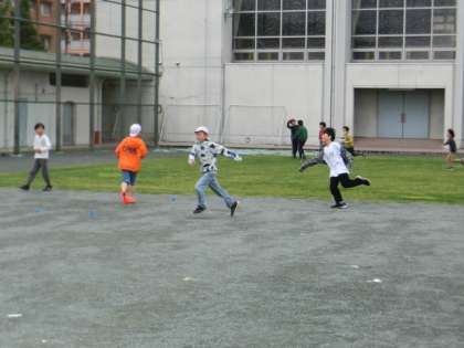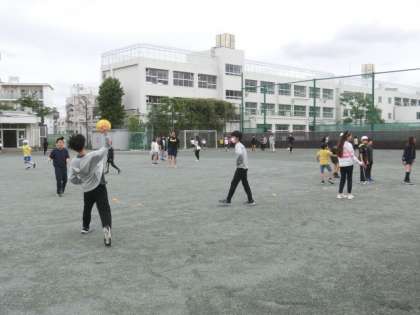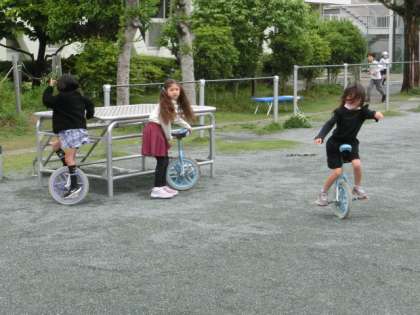 ボール遊び、おにごっこ、一輪車などで遊んでいます。