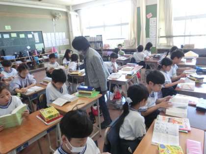 国語辞典のひき方、言葉の選び方などを実際に辞典をひいて確かめています。