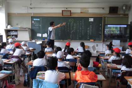 2年生は道徳です。係活動の頑張りをみんなで認めていくことの大切さを確認していました。褒められることでより一層頑張れることに気付いていました。掲示物を見ながら4月からの自分たちの頑張りも振りました。