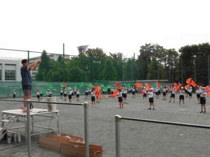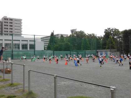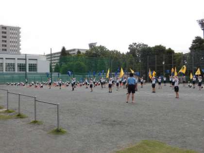 校庭では5年生と6年生が運動会演技の練習をしていました。