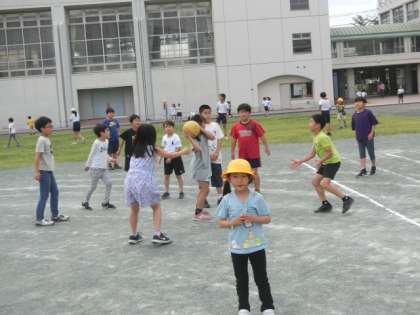 「校長先生、一緒にやろう。」その誘いにのって私も一緒にかけっこをしました。すると、「次、私も。」「おれも。」の声があがり、ヘロヘロになってしまいました。