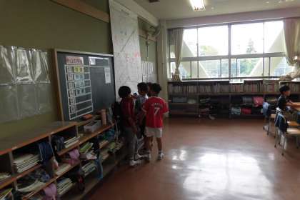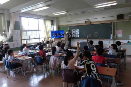 3年生は社会科で地図記号の学習をしていました。自分たちの知っている施設のマークを確認したり、描いたりしました。クイズも交えながら楽しく取り組んでいました。