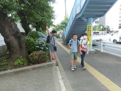 今日も元気な子どもたちです。わたしの後ろから登校してきた人に「わっ!」と、驚かされました。今日も楽しい1日の始まりです。