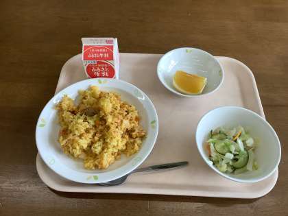 今日はカレーピラフと果物が子供達に大人気でした。カレーの風味が食欲をそそる味でした。