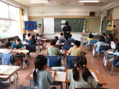 1年生の授業は国語です。文をつくる学習です。