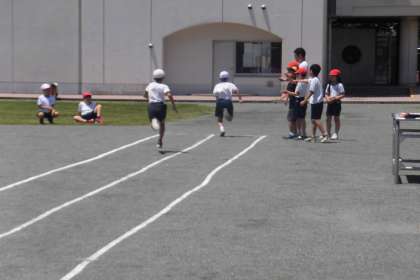 4年生は体力テストの種目の1つ「50m走」の測定でした。運動会の短距離走の経験を生かして腕をしっかりと振り、力強く走っていました。