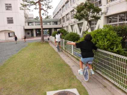 私は6年生4年生の人に1輪車を教えてもらっていました。子どもたちは、すごいです。1輪車は本当に難しいです。