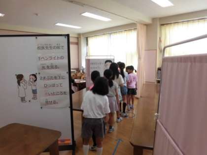 今日は校医の先生にいらしていただき、眼科検診がありました。