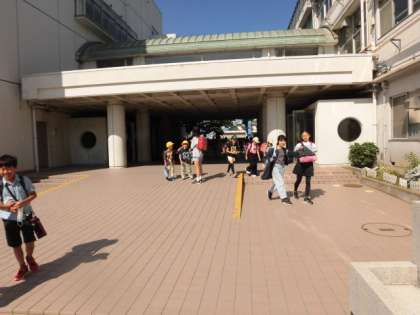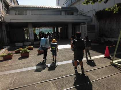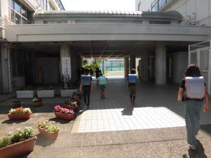 子どもたちが登校してきました。気持ちのよい青空です。遠くからあいさつをしてくれる人がいます。嬉しい気持ちになります。