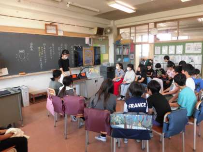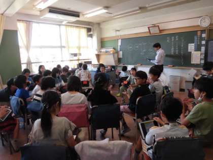 5年生の授業は教科日本語です。ビブリオバトルをやっています。