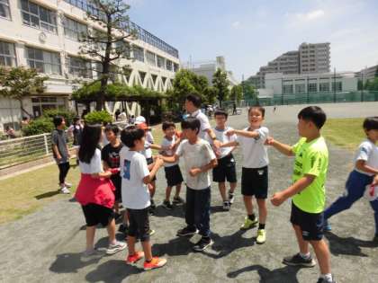 去年まで池尻小にいた主事さんが、子どもたちに会いに来てくれました。子どもたちは大喜びです。中休み、一緒におにごっこを始めました。子どもたちの嬉しそうな笑顔が光っていました。