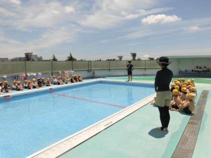 1年生のプール開きです。今日は気持ちのよい青空。絶好のプール日和です。