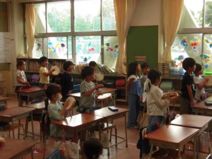 子どもたちは歌を歌いながら、楽しそうにリズムを刻みました。