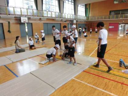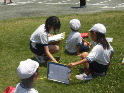 各種目の場所に移動するのも、1年生と6年生は一緒です。