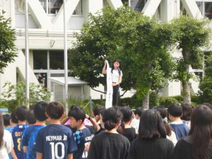 今日は、サッカーの表彰がありました。名前を呼ばれた子どもたちの返事が大きな声でとてもすてきでした。
