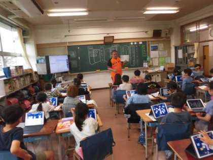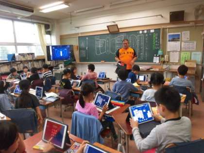タブレットに自分の考えを書き込んでいます。自分の考えを整理するときにタブレットの図を使っています。