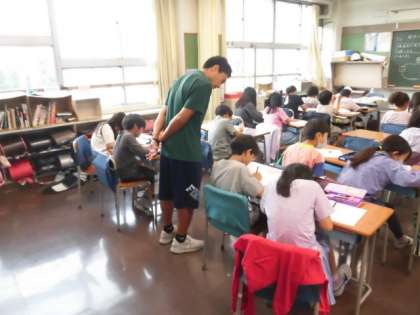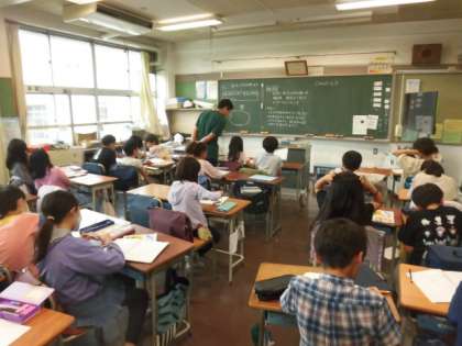 電流の流れる方向についての学習です。実験で分かったことを各自ノートに書き込んでいます。電流の学習は、実験がとても楽しいので、このような実験後のまとめが大切です。