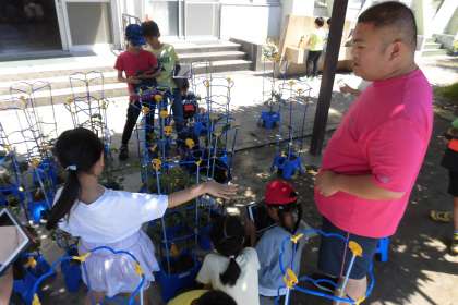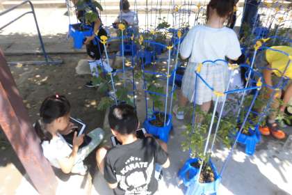 2年生は生活でした。自分たちが育てている野菜の生長を観察しました。葉っぱが大きくなっていることや虫がいたことをうれしそうに教えてくれました。