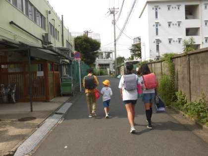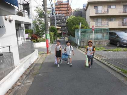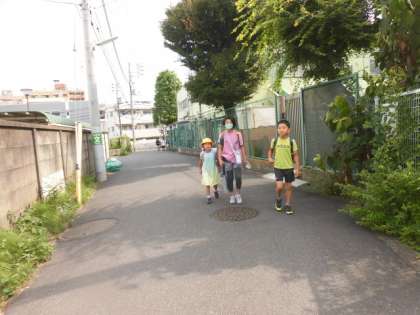 子どもたちが登校してきました。朝から日差しが照り付けています。今日も暑くなりそうです。