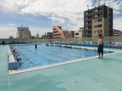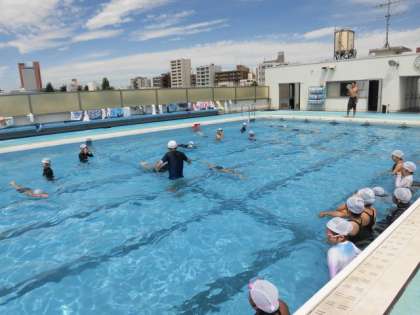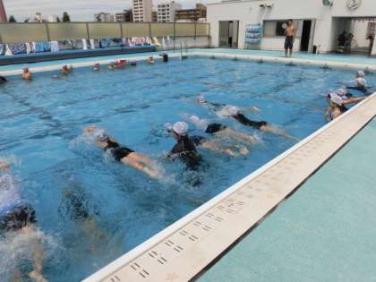 見にいったときは、けのびの練習をしていました。上手な人は、水の中をどんどん進んでいきます。手本になった人の泳ぎを見て、みんな拍手をしていました。