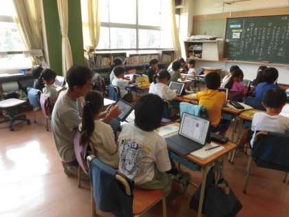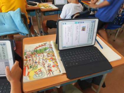 子どもたちは、タブレットに向かって、一人ひとりしっかりと考えていました。