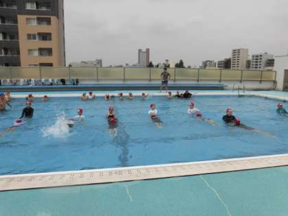 見にいったときは、けのびを中心にやっていました。水の中では、体に力を入れずに浮くことがとても大切です。5年生になると、脱力してきれいに浮いている人がたくさんいます。