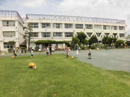 気温と湿度のため、少し体を動かすだけで汗が出てきます。しかし、子どもたちはとても元気です。広い校庭を走り回っています。