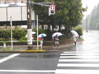 子どもたちの登校の時刻です。朝方からの雨が、強さを増しています。
