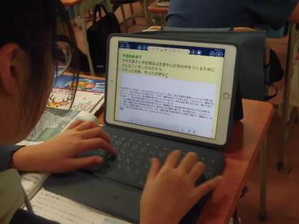 蘇我氏が繫栄していたころ、どのように天皇中心の政治をすすめようとしていたのかを一人ひとりタブレットにまとめています。