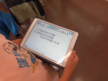 「小数点を一回消せばいい。」という意見を多く耳にしました。「小数点を勝手に消していいの?」「小数点を消すって、どういうことなの?」そう言うと、子どもたちは考えています。