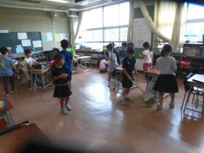 掃除の時間に各教室を回りました。子どもたちは暑さにも負けず掃除をしています。