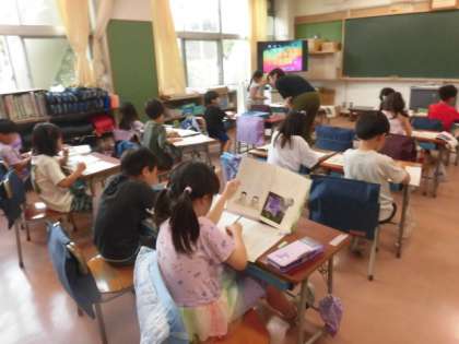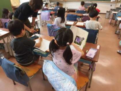 1年生の授業は国語です。説明文の学習です。