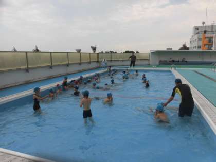 体の力を抜いて浮いたり、逆にもぐったりしています。宝拾いの時間は、みんなニコニコ顔でとても盛り上がっていました。
