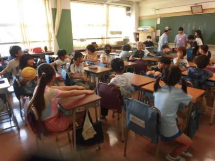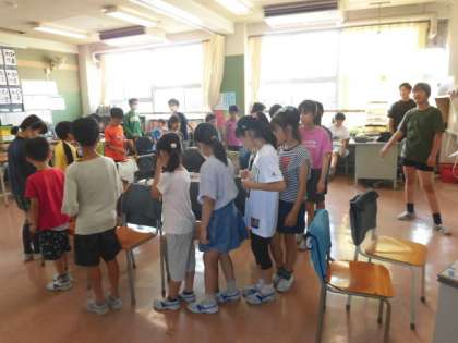 各班いろいろな遊びをしています。いす取りゲーム、ハンカチ落とし、なんでもバスケット、ばくだんゲームなど、子どもたちは、楽しそうです。6年生が下級生をうまくリードしています。
