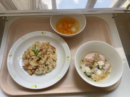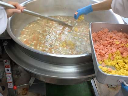 今日は、七夕の献立でした。朝から調理員さんは大変でしたが一生懸命作ってくださり、おいしいちらし寿司が出来上がりました。