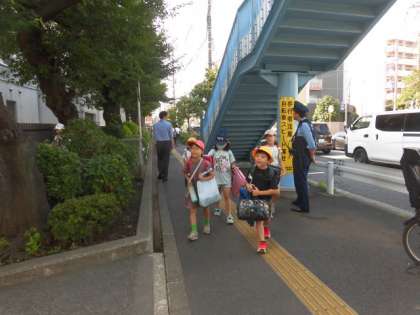 今日も池尻交番のおまわりさんが子どもたちを見守ってくれていました。