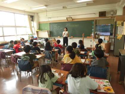 風の力を強くするとものを動かすはたらきはどうなるかを考えています。