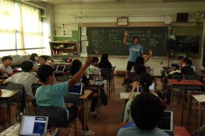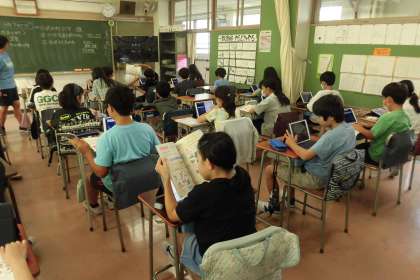 6年生の授業は保健体育です。感染症の予防について考えていました。自分が知っていることに加えて、教科書やインターネットから集めた情報をみんなで交流しました。昨日の「子どもの健康を考える会」で教えていただいたことも子どもたちに伝えて睡眠時間についても楽しく考えられました。