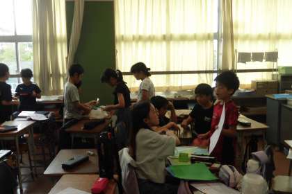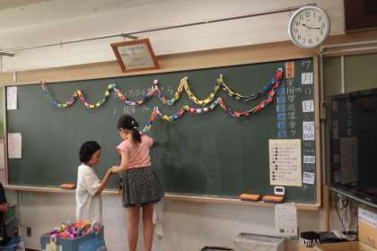 5年生は学級活動です。前回の学級活動で決めた「お別れ会」について、それぞれの担当に分かれて準備を進めていました。輪飾りや紙吹雪を作るグループや、司会、遊びの説明、進行など協力し合って活動していました。一人ひとりの頑張りが思い出深い「お別れ会」につながっていくと思います。残り短い1学期ですが、準備の段階から転校する子にとってよい思い出となるように応援しています。