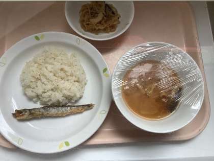 牛乳・麦ご飯・ししゃものから揚げ・味噌汁・切り干し大根の煮物