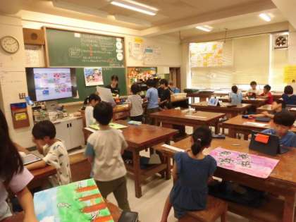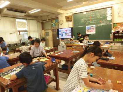 3年生の授業は図工です。展覧会に出展する作品を選んでいました。