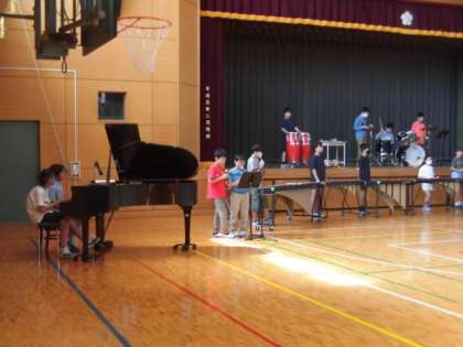 6年生は体育館で合奏の練習をしていました。来週の水曜日音楽集会があります。そこで、クラスごとに合奏の発表をするのです。こちらのクラスの合奏曲は「彼こそが海賊」です。