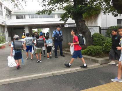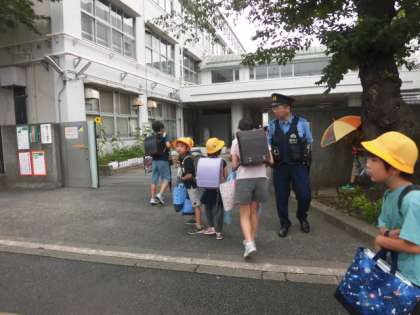 今日も池尻交番のおまわりさんが子どもたちを見守ってくれていました。